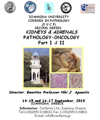 September 14-15 and 16-17, 2010 Ioannina University Courses: Kidneys and Adrenals, Pathology-Oncology Ioannina, Greece e-mail: info@conferee.gr www.iucp.gr |